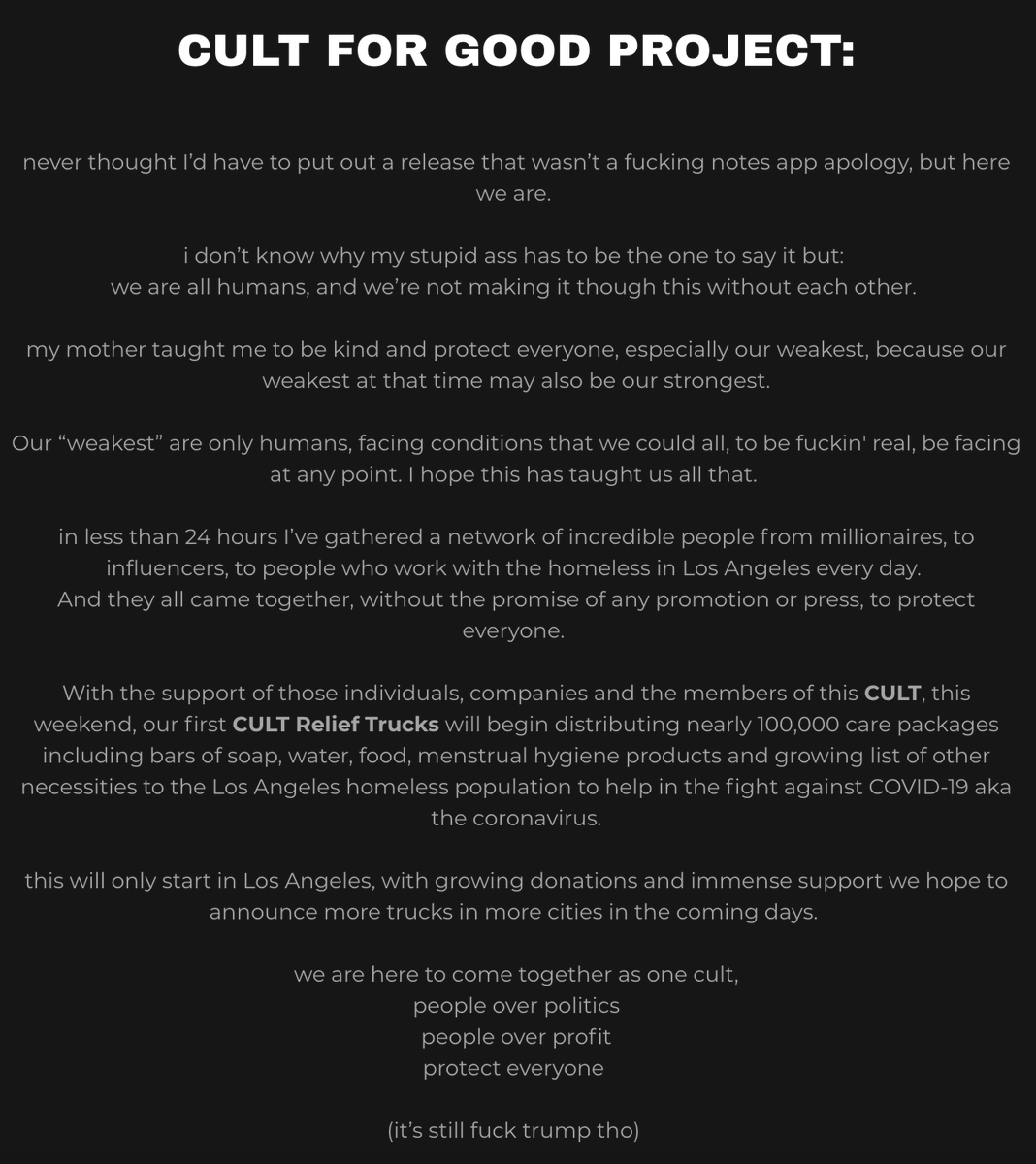 Can we make this a full time thing where we just continue to raise money to donate these products to homeless shelters across the U.S