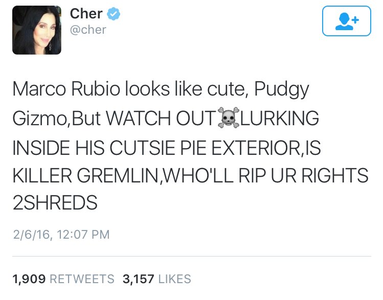 @aguywithnolife cher speaks the truth - don't feed him after midnight