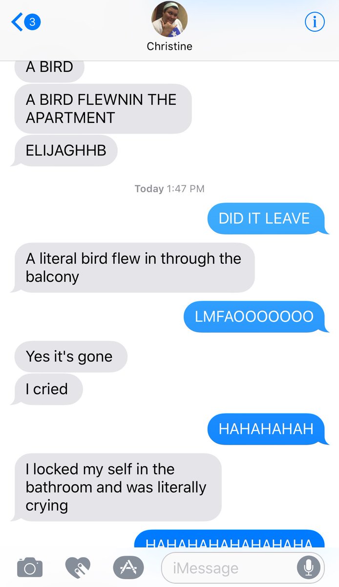 @sdhunter6 "Y'ALL THE BIRD JUST FLEW OVER ME" "WHERE??" *COLLECTIVE SCREAMS*