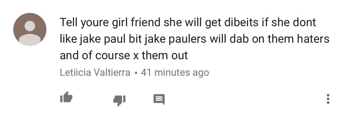 didn't know u could get ...dibeits.... from not liking jake paul. my life is truly turned around and i see the light now. thank you letiicia