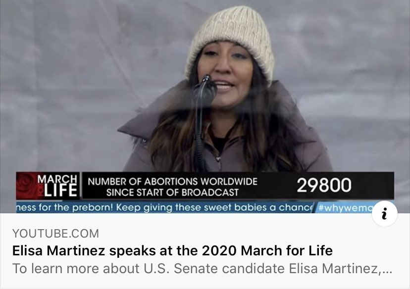 Elisa is a champion for LIFE and spoke on the same stage with @POTUS at the 2020 National March for Life! Elisa Martinez is the only candidate for U.S. Senate with a record of fighting for LIFE — and winning! Video below
