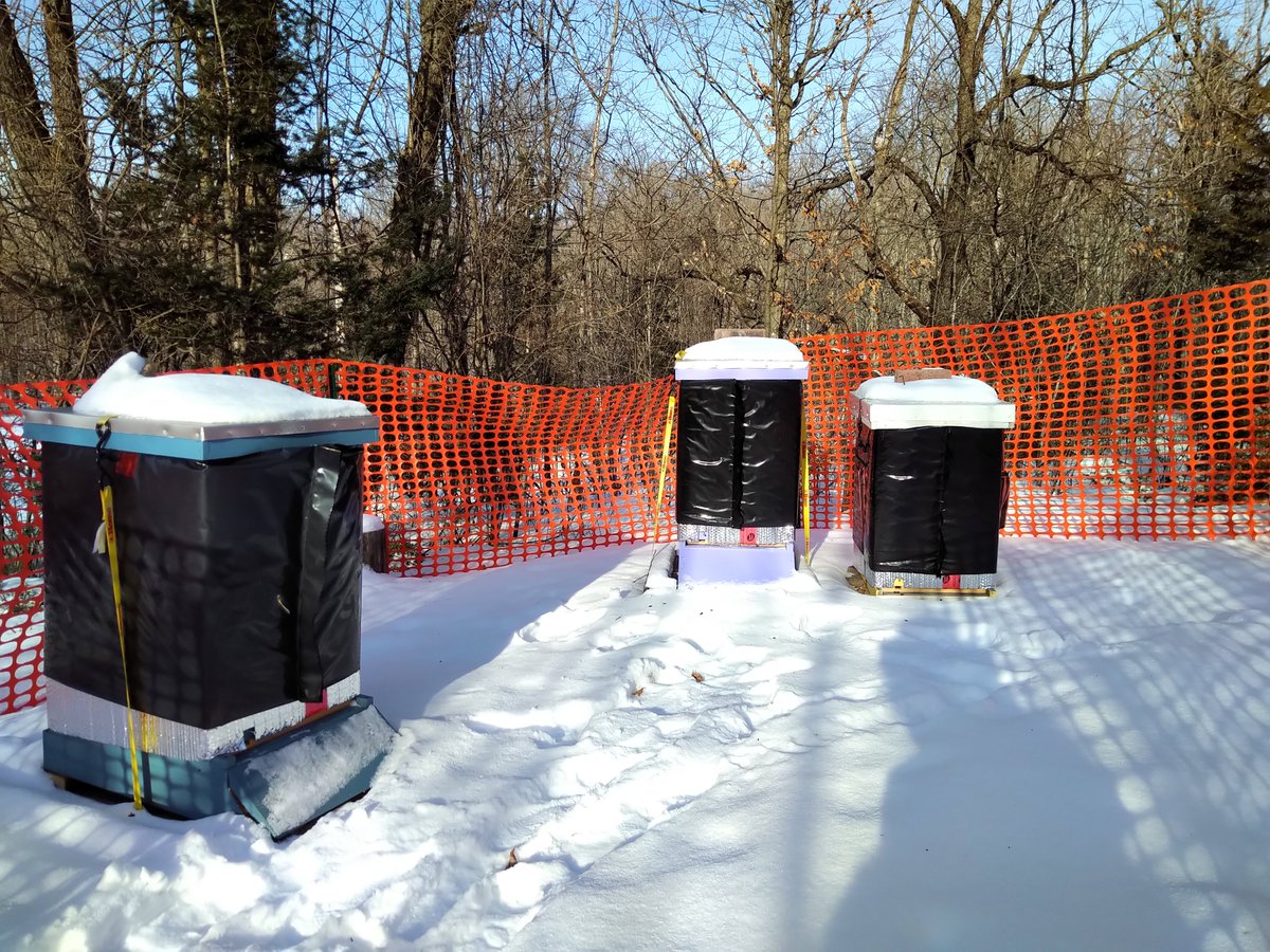 10 am, -15C. The honey bees live: I hear a gentle buzzing from all three hives. Honey bees stay warm by forming a tight cluster, queen in the middle, and make heat by vibrating the muscles that move their wings. We can sometimes hear this buzzing.pic.twitter.com/tYldPKGuMF