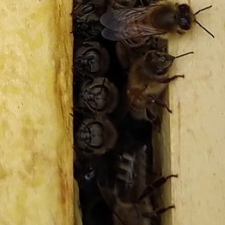 Sugar babies! 3/3 hives are alive. We cracked them open during the warm spell today to feed sugar blocks (seen in 1st photo) to the honey bees as insurance against starvation. But they have ample honey stores still. (Hey, look at the bees peering up at us in the 2nd photo. Hi!)pic.twitter.com/3JnPS0jVcn