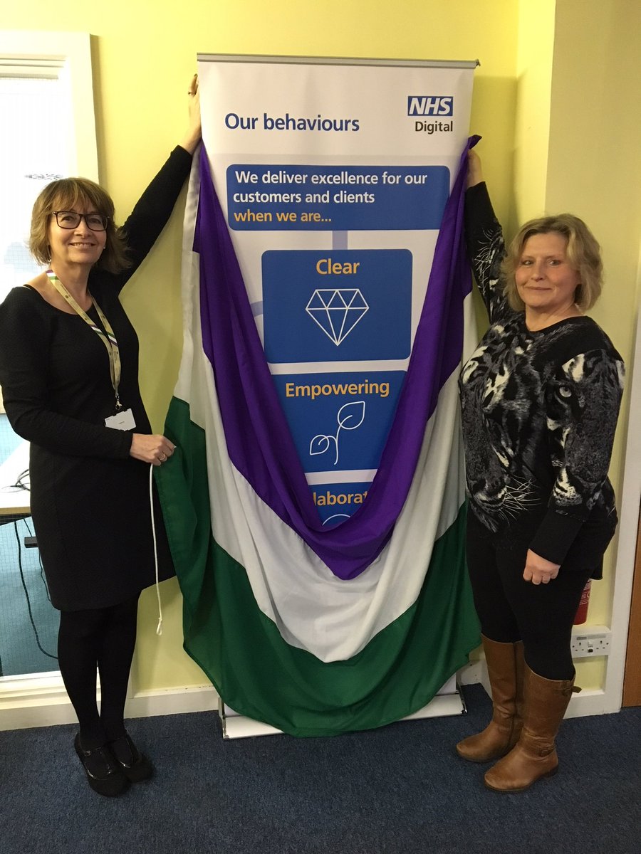 @Suffrageflag in the reception@NHSDigital Exeter alongside our organisation values.pic.twitter.com/gtJcKCdlT8