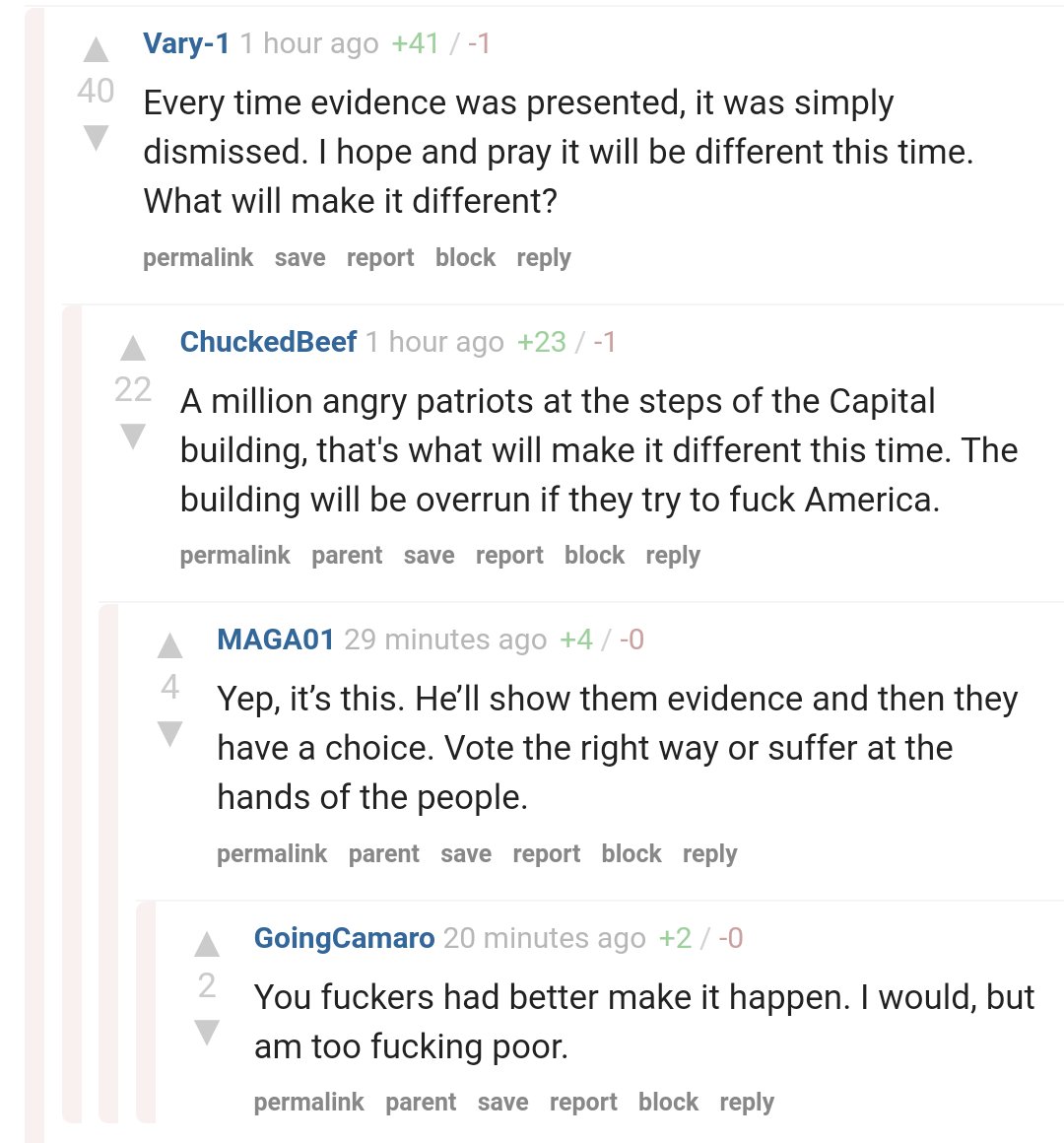 Also, it's total BS to say that law enforcement had no warning. In the days leading up to Jan. 6, Trump supporters online were QUITE LITERALLY SAYING that they were going to DC and planned to storm the Capitol.https://twitter.com/pdmcleod/status/1345123867673702401 …