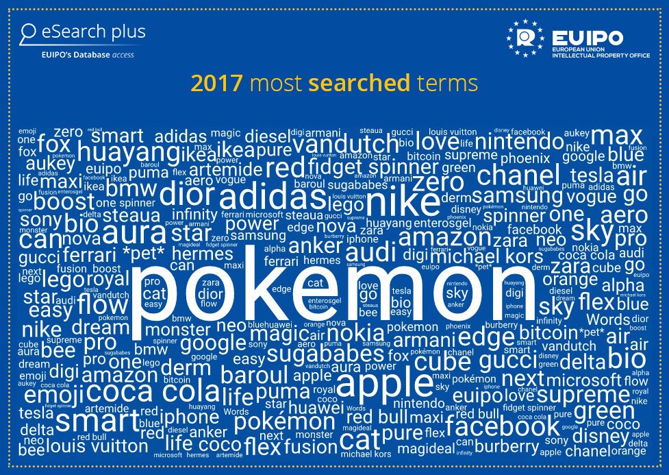These were the most searched names on our trade mark database in 2017. More searches at http://euipo.europa.eu/eSearch/ pic.twitter.com/3yPu49Q81N
