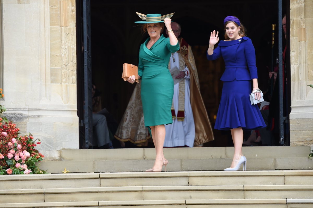 Mother of the bride Sarah Ferguson and Beatrice arrive