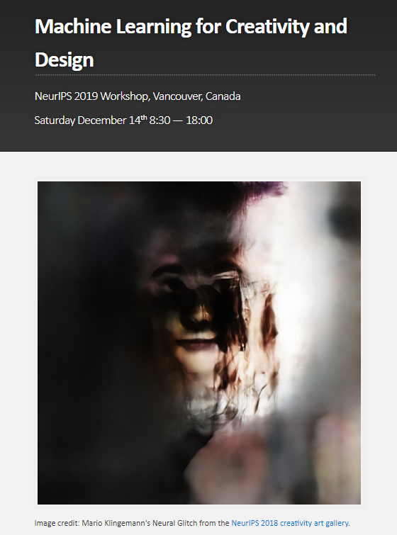 I've started adding these as they come in:https://neurips2019creativity.github.io/