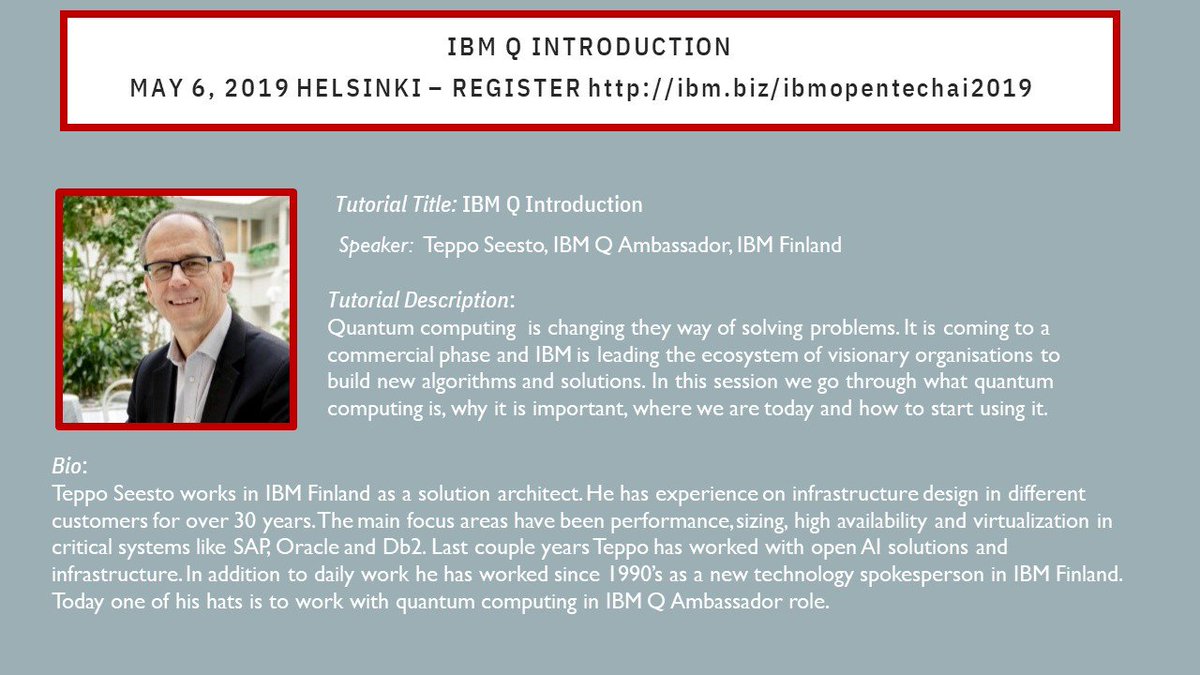 Join Teppo Seesto #ibmq ambassador explaining #quantum at #opentechai in Helsinki - Hear about #opensource @qiskit #QuantumComputing access - Register http://ibm.biz/ibmopentechai2019- … see great #quantum #MachineLearning article in @nature magazine https://www.nature.com/articles/s41586-019-0980-2 … @snarky_androidpic.twitter.com/TcWbqf6n8n