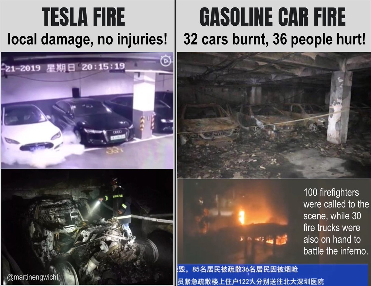 @elonmusk Any car has small risk of fire but any way you look at it electric & Tesla cars are safer compared 2 gasoline cars.  Feb.14 was a gasoline car park fire in#CHINA burning out a whole car park, DESTROYING 32 CARS & INJURING 36 people!$TSLA http://www.thatsmags.com/china/post/26885/32-cars-destroyed-36-people-hospitalized-after-fire-in-shenzhen …pic.twitter.com/ZB1E23pa0L