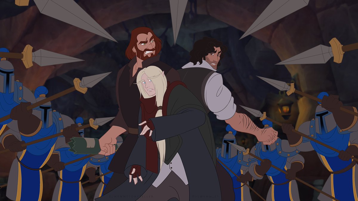 #Blizzney#Warcraft collab' with@RavenstoneArt, featuring Helios! He suggests to Dalthoran to jump to the other side as they run away from his ex-mentor, a cultist leader. Dal' isn't too sure about it... Neither is Dandelion.pic.twitter.com/KVYsiMIQrG