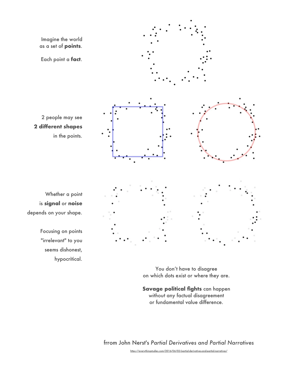 This reminds me a lot of @sallesino's beautiful ilustration of facts as colored points and beliefs as