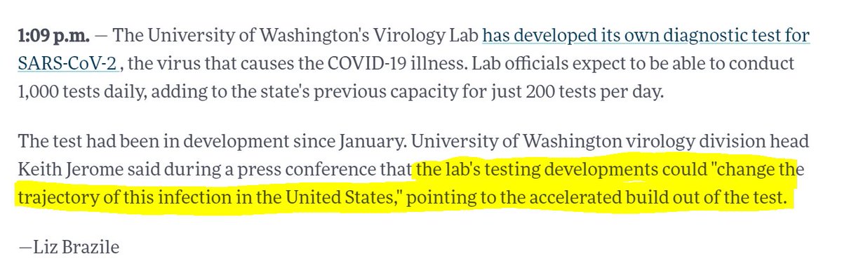 HAPPY STORY ALERT: @UW @UWVirology has developed it's own #COVID19 test & expects to be testing 1k-1.5k people per day by the end of the week.