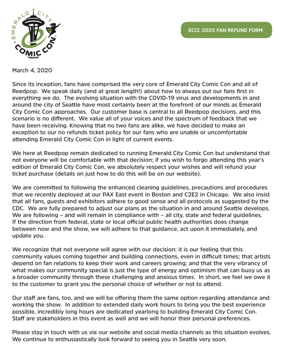 Meanwhile Comic Con will bring together 100,000 people in Seattle in a week. Into an area of America’s only known, potential larger outbreak. So far, local officials and event organizer are maintaining the event with stepped up efforts at infection control and other measures. pic.twitter.com/saECQabd8R