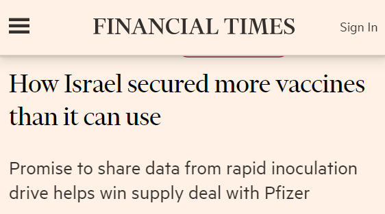 @FT headline paints image of Israel maliciously hoarding supplies. Israel's health minister@YuliEdelstein has said that Israel is looking to share excess doses with Palestinians. This headline grotesquely distorts that reality.pic.twitter.com/ZfLrB38g5F
