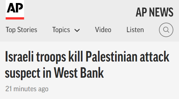 @AP? Here's one way the headline could have been written: "Palestinian man attempts to stab Israeli soldier, is shot dead."pic.twitter.com/h3jol9GkZq