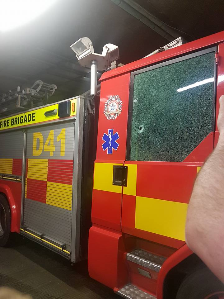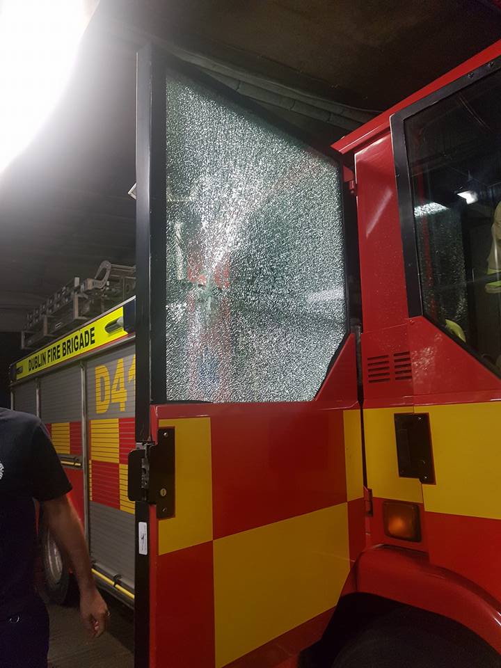 Unfortunately one of our fire engines came under attack whilst approaching a bonfire in the East Wall area. Fortunately no injuries 1/2pic.twitter.com/IzcH0f5FT8
