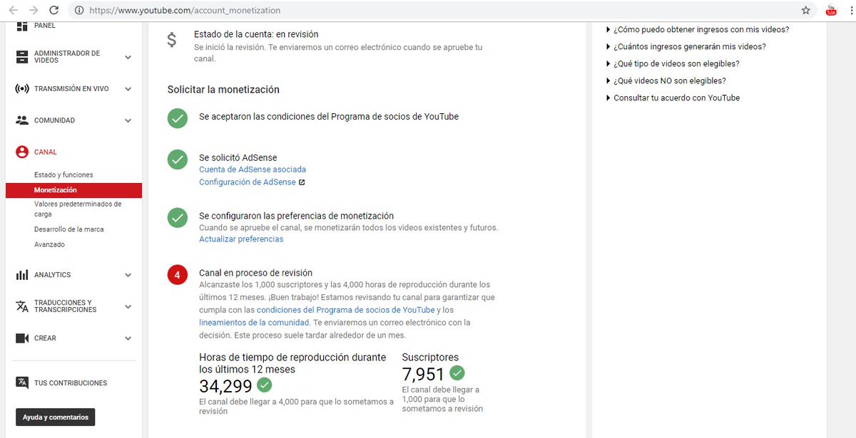 @TeamYouTube Hola, estoy esperando que contesten por el tema de la monetizacion de mi canal, ya que la pedí pero me dijeron que me iban a pasar a una segunda revisión, esto fue en el mes de abril. En cuento me lo vuelven a revisar? mi canal cuenta con todo las políticas en regla.