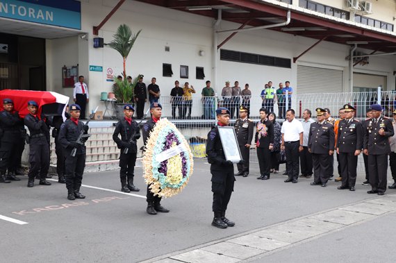 Penghormatan terakhir di depan peti jenazah pahlawan Bharatu (Anumerta) Doni Priyanto yang gugur bertugas untuk negara dalam serangan Kelompok Kriminal Bersenjata (KKB) di Mimika.pic.twitter.com/vnMHVEUuqi