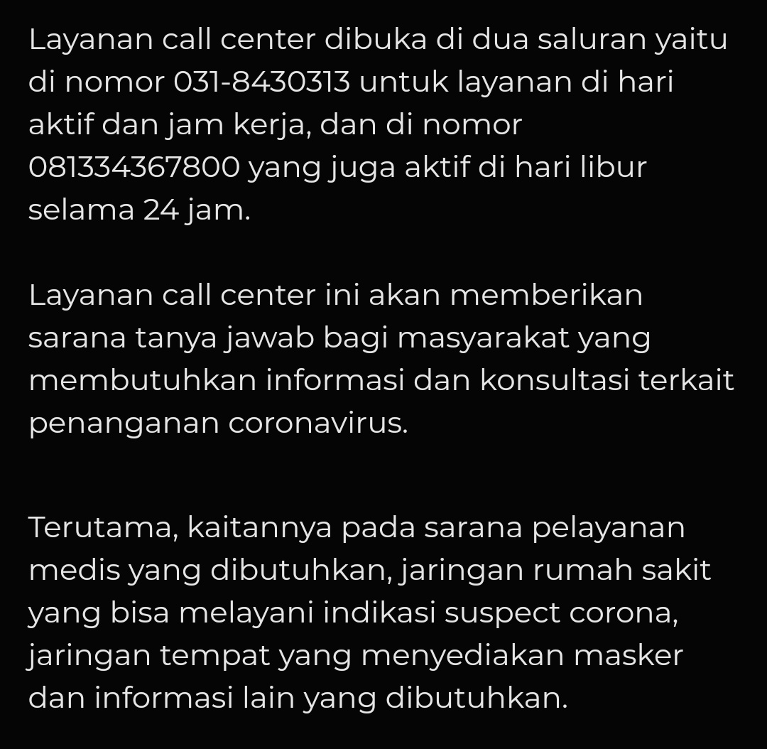 Atas arahan ibu Gubernur, berikut call center untuk yang membutuhkan informasi dan konsultasi terkait penanganan virus Covid-19.pic.twitter.com/0g8ezRU3V1