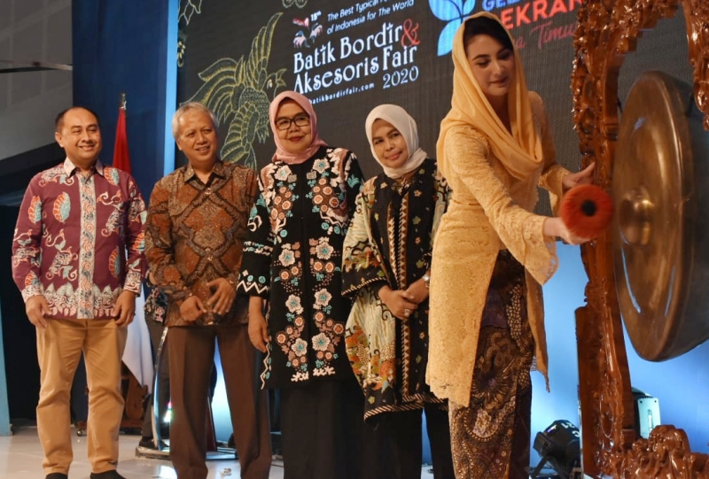 Ketua Dekranasda Jawa Timur, Arumi Bachsin Emil Dardak membuka acara Pameran Kriya Dekranasda dan Batik Bordir Aksesoris Fair 2020 Jawa Timur di Grand City Mall Surabaya, Rabu (4/3).