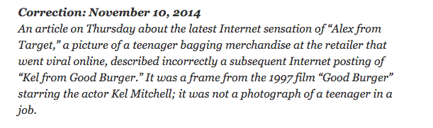 Correction of the Year RT @emily_cohn: um @nytimes are you ok? http://www.nytimes.com/2014/11/06/business/media/teenage-clerk-rises-from-target-to-star-on-twitter-and-talk-shows-.html?partner=rss&emc=rss …pic.twitter.com/c04k0x9Jac