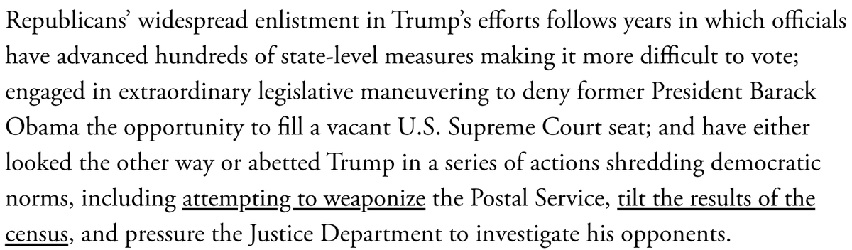 Republicans’ support for Trump’s ongoing bid to overturn the 2020 election has crystallized a stark, & previously unimaginable, question: Does the GOP still qualify as a small-d democratic party—or is it morphing into something very different? My take.https://www.theatlantic.com/politics/archive/2020/12/gops-anti-democratic-bid-overturn-election/617358/ …