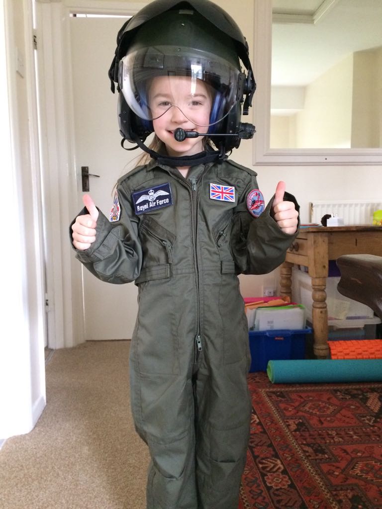 So this is my 6yr old niece loving her RAF flying suit and her mother's flying helmet. Shows the importance of visible role models.