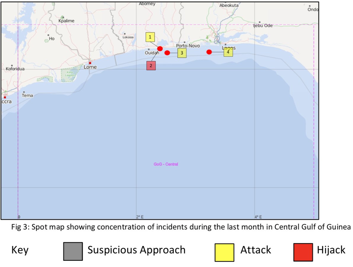 #maritime crime & piracy reported from vicinity of Benin's anchorage areas this year. Follows a period of 4 years previous to 2018 where no maritime crime had been reported from this location. Subscribe to our country#risk map for more.pic.twitter.com/cefhjBmJKy