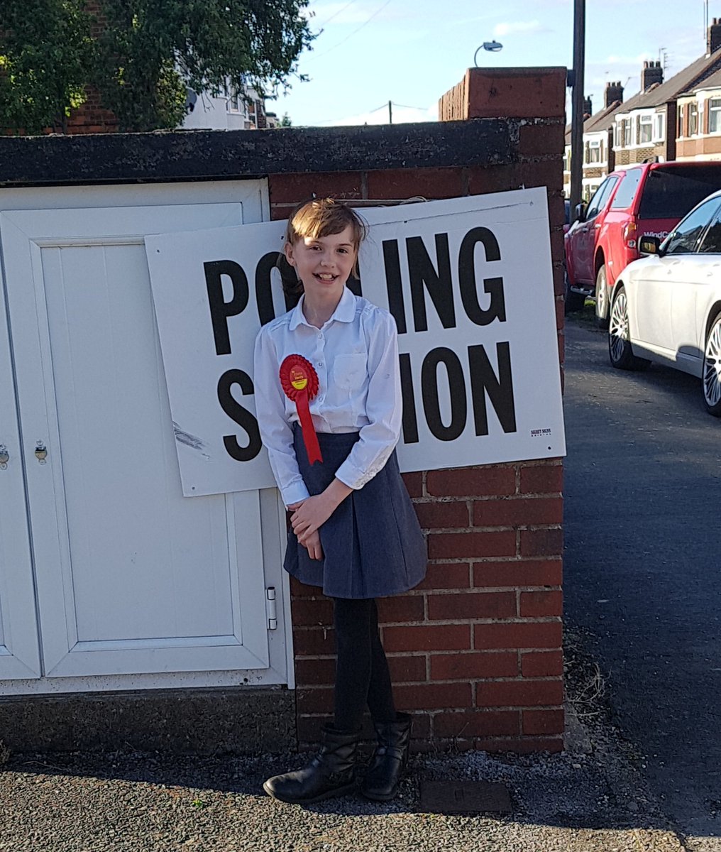 Small childs friend came round "Can you play out?" Small child response: "No I'm having my tea & then I'm going out to vote"