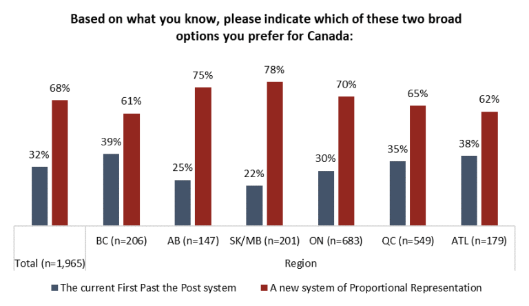 There may be a turning of the tide in Canada's electoral reform discussion. Support for proportional representation has risen from 47 per cent to 68 per cent since the beginning of 2016: http://angusreid.org/electoral-reform-trend …pic.twitter.com/jsBE2Hmz4k