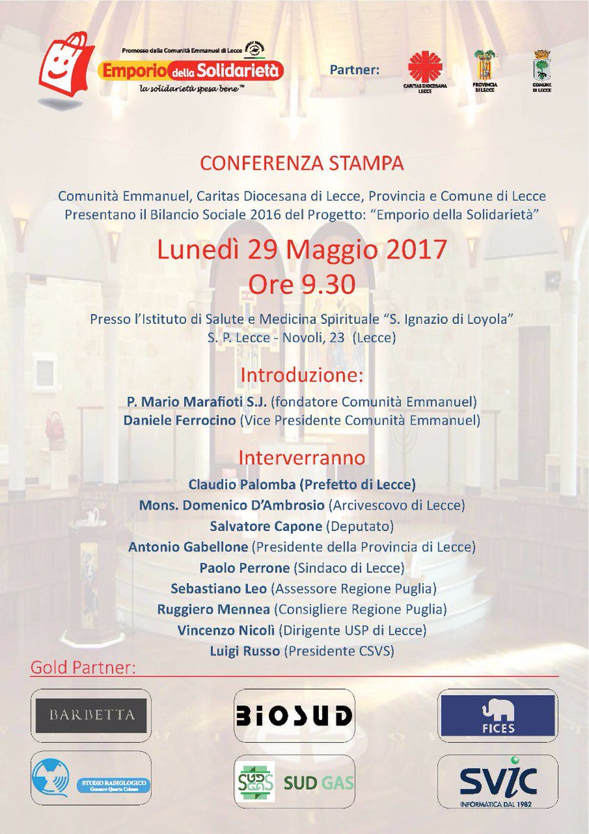 IN NOME DELLA TRASPARENZA E TRACCIABILITÀ IL 29 MAGGIO PRESENTEREMO IL BILANCIO SOCIALE DELL'EMPORIO DELLA SOLIDARIETÀ DI LECCE.pic.twitter.com/hQjEZhjnGG