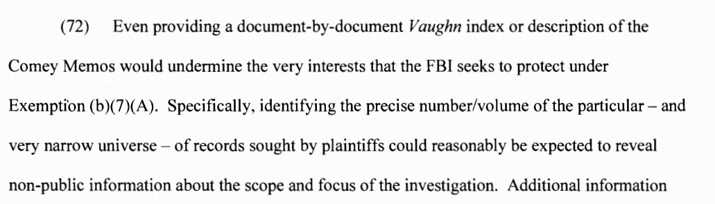 Basically, the FBI wants to keep Comey's memos of his conversations with Trump secrets, for reasons that it says also must remain secret.pic.twitter.com/mcSvft5l51