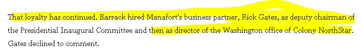 The man who should be sweating Gates' cooperation who is largely slipping under the press' radar is Tom Barrack, the lifelong dealmaker with authoritarians (esp Saudi Royals) who vouched for Manafort to Trump and then hired Gates for... reasons. https://www.washingtonpost.com/politics/hes-better-than-this-says-thomas-barrack-trumps-loyal-whisperer/2017/10/10/067fc776-a215-11e7-8cfe-d5b912fabc99_story.html?utm_term=.9701e40f80b6 …pic.twitter.com/CDDWW8qLv8
