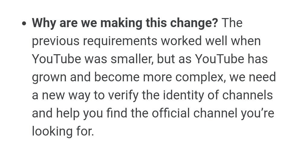 It should be easy to know when you’ve found the official YouTube channel of a creator, artist, brand, or public figure. So in late October, we’re updating what it means for channels to be “Verified” w/ new eligibility criteria & a new look. Details → https://yt.be/help/3QfB pic.twitter.com/JXOvMbkbns