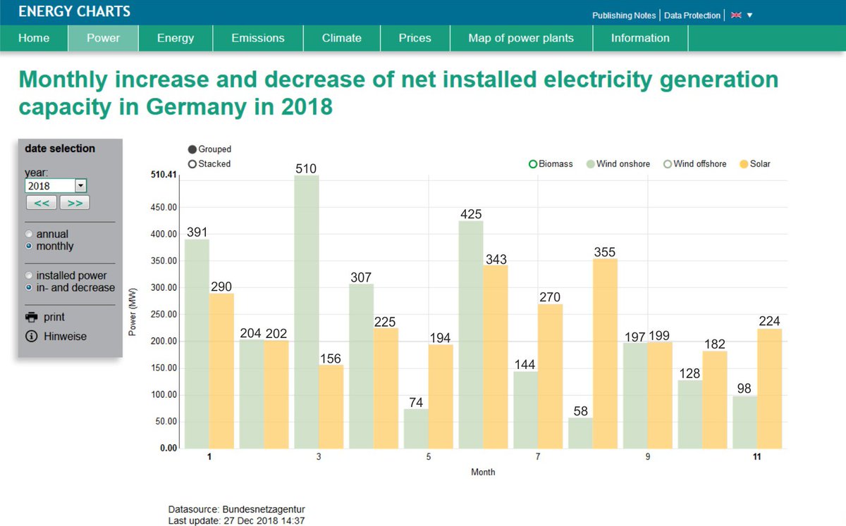 German renewables installations in November 2018: 223.6 MW Solar 97.8 MW Wind onshore 1.80 MW Biomass https://www.energy-charts.de/power_inst.htm?year=2018&period=monthly&type=inc_dec …pic.twitter.com/9izmD73yBu