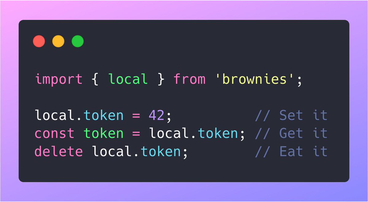 @davidwalshblog, I just read your post on Proxies+localStorage and I made a library that works exactly like this, for `local` (Storage), `session` (Storage), `cookies` and `db` (IndexedDB): https://github.com/franciscop/brownies …pic.twitter.com/rdqp7rzMNm