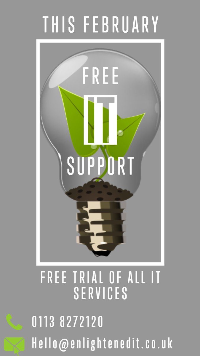Enlightened IT Services Limited is offering a Free Trial of all of their IT support services for the month of February. If you are: * Thinking of using an IT Support Company for your business * Looking around at changing your current provider * Just b…https://lnkd.in/dAmPKw2