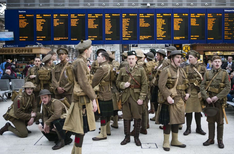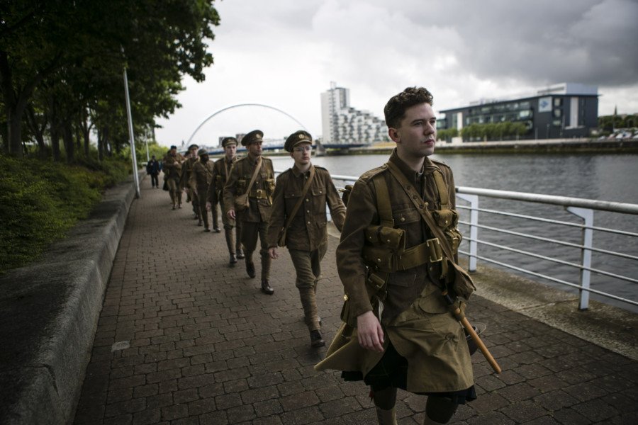 Performers across Scotland don WWI uniforms to honour Battle of the Somme http://trib.al/qdTvMKj pic.twitter.com/MBIncQ3udR