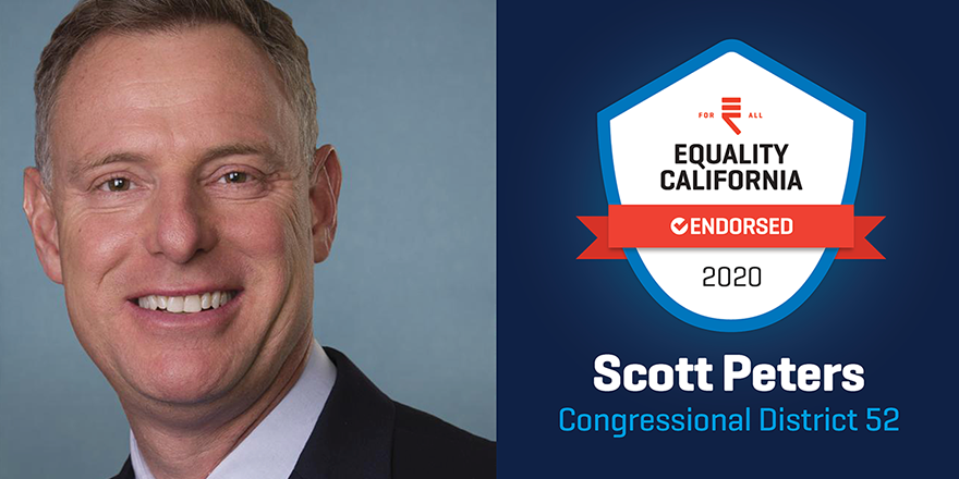 We are proud to support pro-equality champion @ScottPetersSD for Congressional District 52! #Vote4Equality
