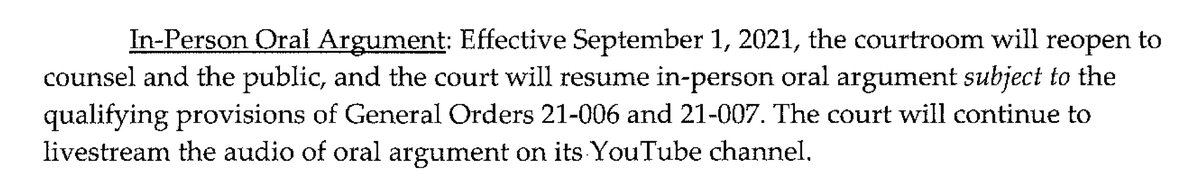 Seventh Circuit will resume in-person oral arguments Sept 1, but will continue to livestream audio: https://bit.ly/3iEWZ6D ) • COVID rules will be in place: https://bit.ly/3Bw2DR6 • Option remains to permit remote arguments: https://bit.ly/3kMp1zH )pic.twitter.com/IMF7Ti9usD