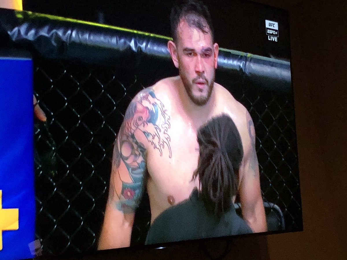 #UFCVegas9 is great!#Overeem kicked him in the bladder