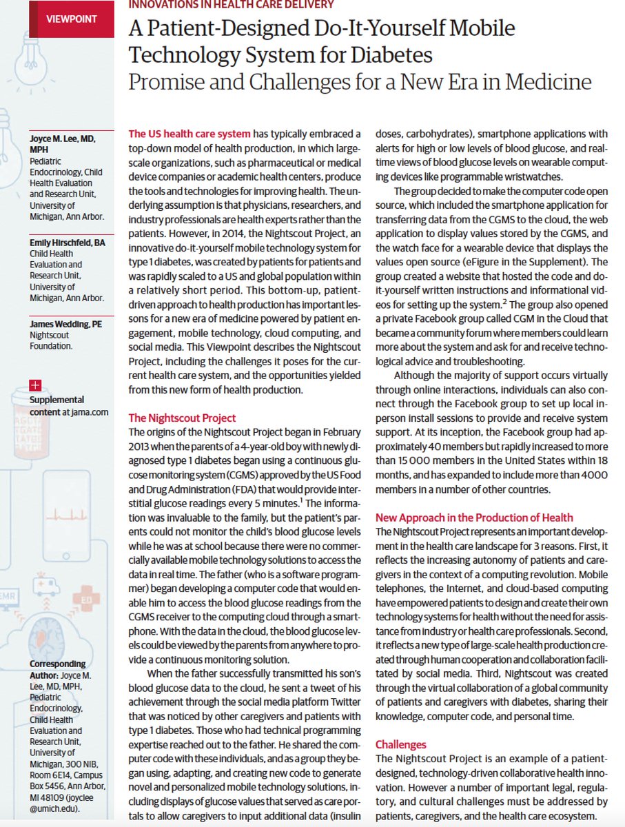 Eric Topol @EricTopolInnovation by patients in a new era#DIY#diabetes http://bit.ly/1SLeSKM@JAMA_current@JWinMcK#WeAreNotWaiting pic.twitter.com/DCajFoQMor5 retweets 7 likes -