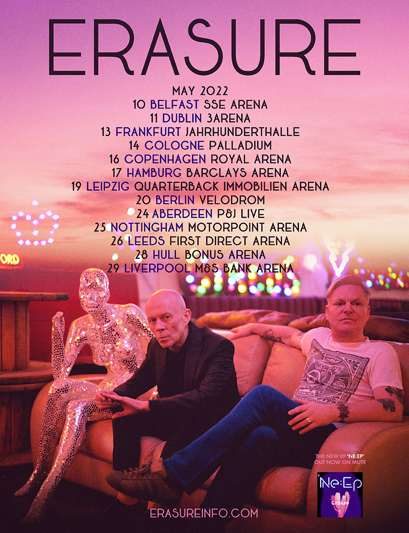 We are delighted to announce that we have added one more show to Erasure's May 2022 tour. In addition to the previously announced dates, Erasure will now also be playing a show at Belfast's SSE Arena on May 10th. PRE-SALE & GENERAL SALE DETAILS: https://www.erasureinfo.com/uk-and-europe/ pic.twitter.com/SJodGjDHhv