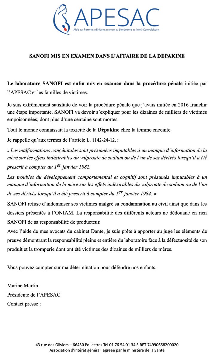 #SANOFI MIS EN EXAMEN au#PENAL dans le dossier de la#DEPAKINE