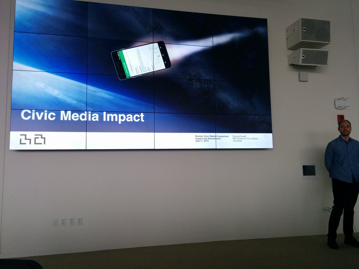 #bostoncivicmedia workshop on Civic Media Impact & Assessment. https://youtu.be/aqvoKmWukuo1:40 PM - 7 Apr 2016 · Details7 retweets 4 likes