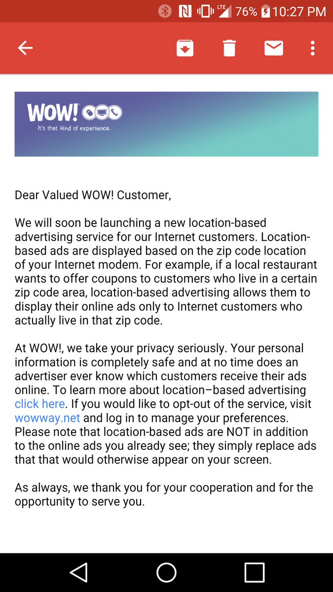 If you have WOW internet, get ready for ad injection.