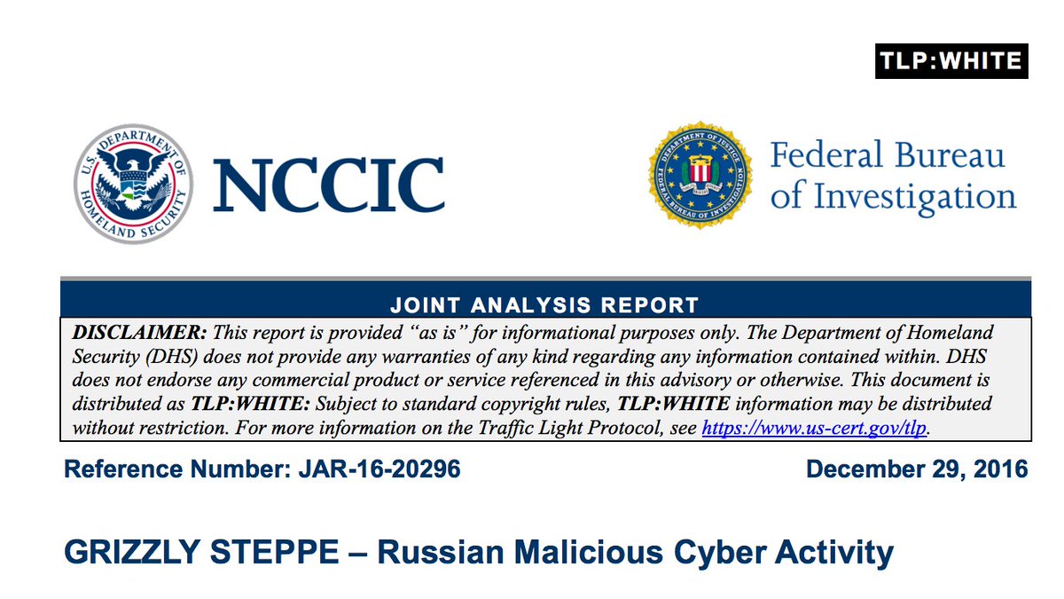 BREAKING: DHS and FBI release report on Russian cyberattack campaign dubbed GRIZZLY STEPPE. https://www.us-cert.gov/sites/default/files/publications/JAR_16-20296.pdf …pic.twitter.com/p5QVW3PBdW