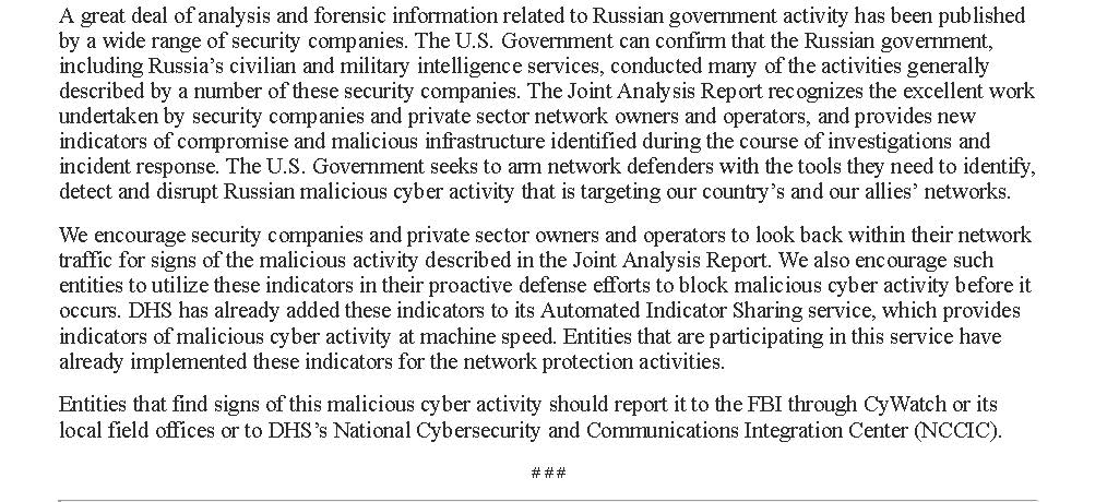 DHS and FBI also releasing technical data on Russian cyberattacks to help the world defend against them.pic.twitter.com/FuJB0lCY7L