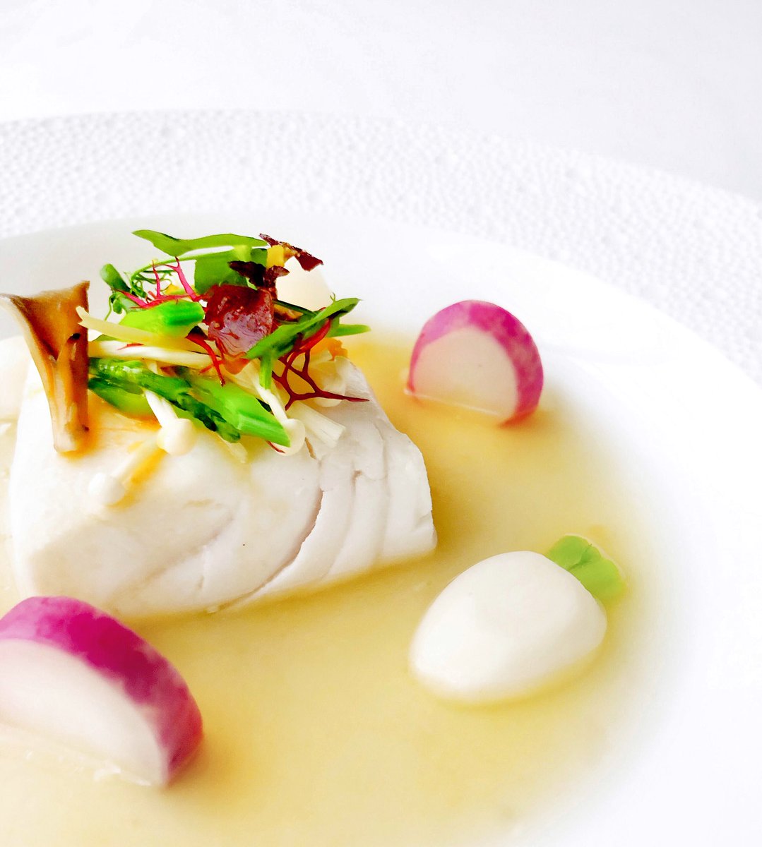 HALIBUT Poached Halibut; Radish Medley Daikon-Ginger Dashipic.twitter.com/6kfas804b1